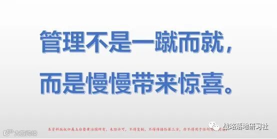 “管理不是一蹴而就,而是慢慢带来惊喜”。这是我一直在向企业家们传播的一个理念。就如同我前面讲的那个利润的规划也好、还是通过预算经营分析去提高企业的战略执行能力也好,绝对不是一下两下就见到效果的,都是慢功夫。换个角度来讲,我们作为管理者,要去影响老板,愿意在管理上坚持投入。我前段时间写过一篇文章,叫《任正非的1997和何享健的1998》,我在看到很多企业都在学华为、学美的,但是我觉得要学的话,不是学它的现在,而更应该回过去看20年前,华为和美的做了什么。因为只有这么去看,才能够看得清楚。所以回过头你去看20多年前,任正非和何享健就表现的跟别的企业家不一样。在20年前,他们就开始认识到管理的重要性、开始抓管理、抓流程、抓制度,他们就在引进人才、培养人才队伍。因为他们这两个老板有这样的管理意识,才有美的华为的今天。