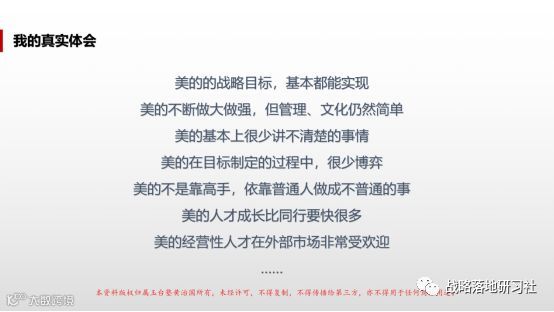 通过这样一个体系,每个月都能够看到,我们当时制定的战略计划、转型的措施,有没有在做?有没有效果?要不要调整?这样的话,整个美的就是一个逻辑化、数字化的决策体系,都是看数据去找问题、做分析、拍板决策的。其实从另外一个角度看,美的培养人也变得非常的容易。就是在这样一种数字导向的经营框架下,通过这个方式,周而复始地计划、预算、分析、总结,只要这个人不蠢、不懒,就能够在这个体系下有效地成长起来。