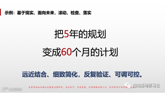 通过这样一个5311,不断地把整个从战略到执行有效的滚动起来。形象地说,相当于把一个五年的规划,变成了60个月的计划。而且这个计划,也不是那种所谓的重点工作计划,一些工作表格。它是一个预算,就是每个月都有详细数据与逻辑的,这样就更加有效地去管控一个比较长期的目标。