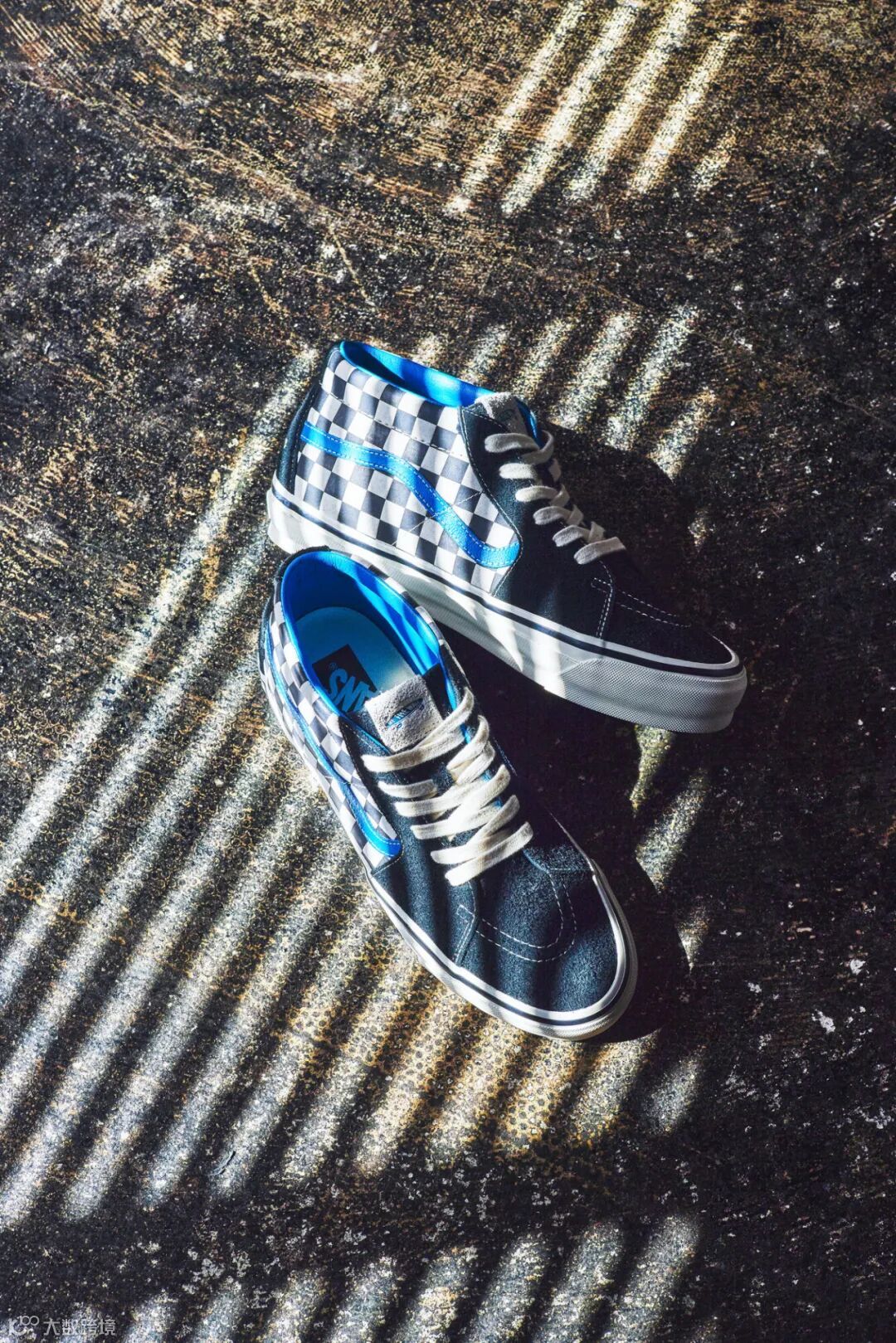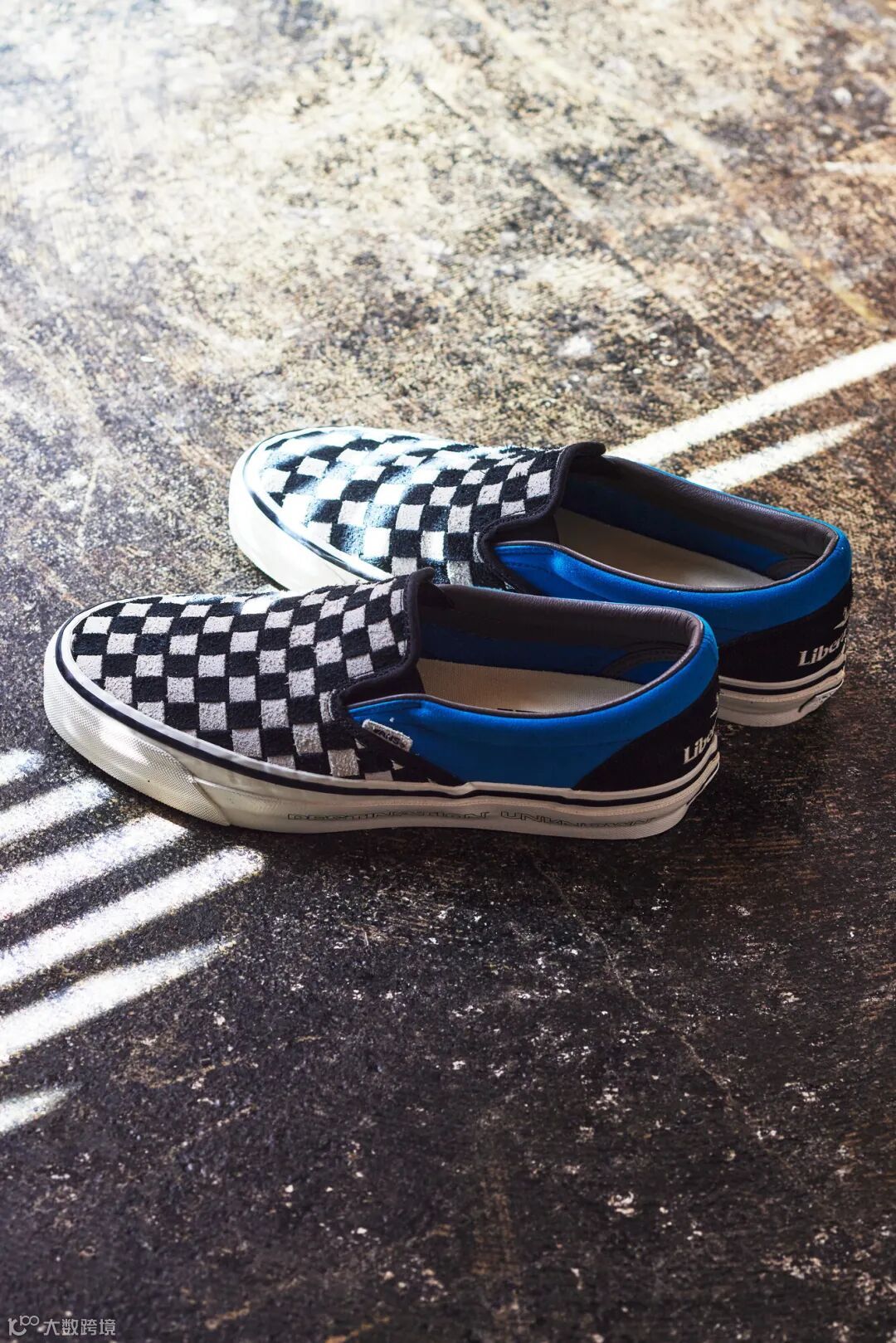 此次联名系列以 Vans 经典的 Sk8-Mid Reissue 83 鞋款和 Slip-On Reissue 98 鞋款为蓝本,并结合 Vans 与 Liberaiders® 两个品牌标志性元素进行重新演绎。其中,Slip-On Reissue 98 鞋款以麂皮面料的棋盘格鞋面进行呈现,Sk8-Mid Reissue 83 鞋款则在鞋帮处满铺浮雕棋盘格。同时均在大底包边及鞋底印有 Liberaiders®“Destination Unknown”主题字样。