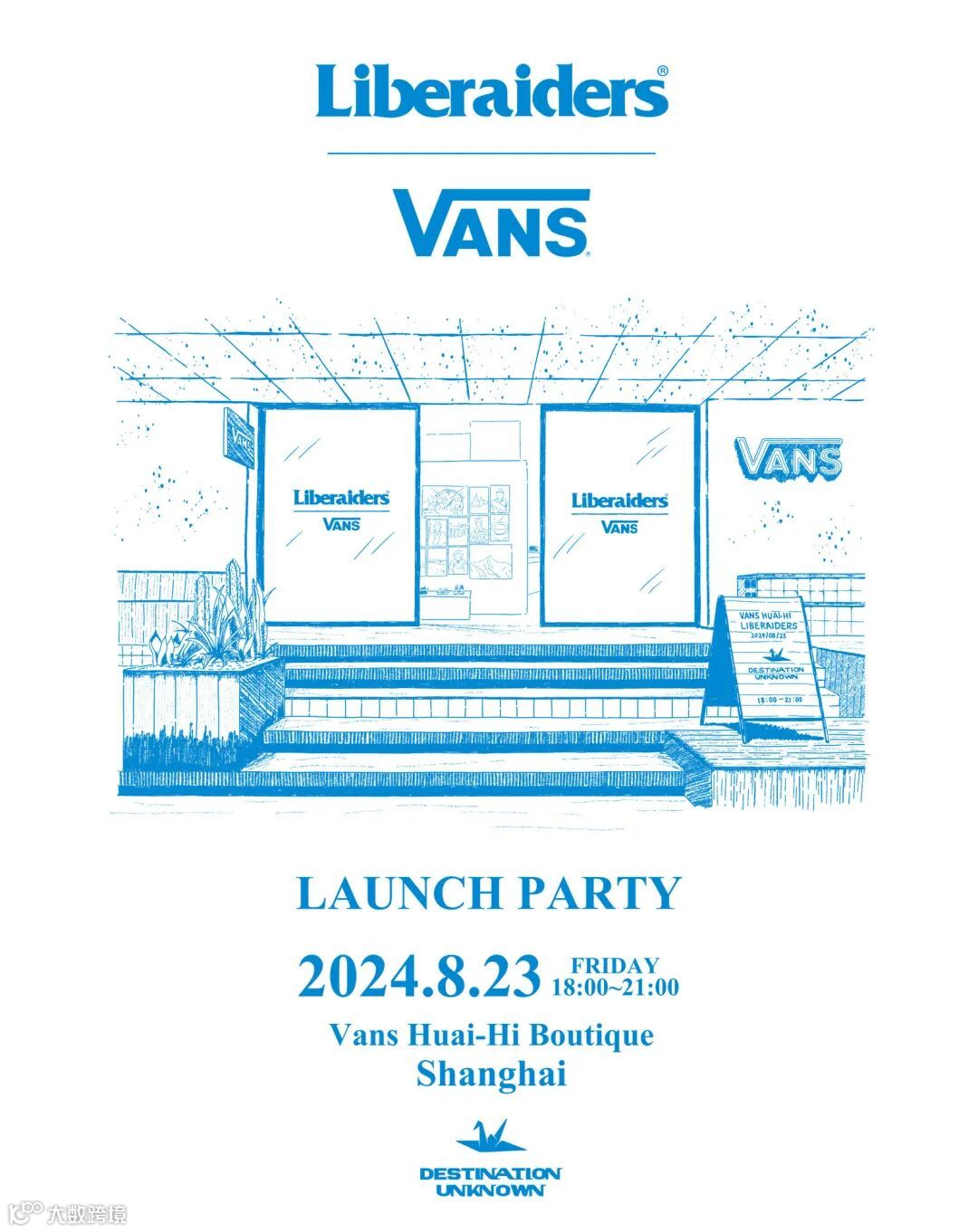 2024 年 8 月 23 号晚上 6 点至 9 点,Vans 与 Liberaiders® 将在上海 TX 淮海 Vans Huai-Hi 店铺举办联名发布活动,除 DJ 演出以及精美食物外,届时梅咏也会亲临现场,共同庆祝双方此次发布的第三次联名系列。24 号发售当天,购买两双本次联名鞋款,亦可获得限定千纸鹤香插周边(先到先得机制,送完即止)。