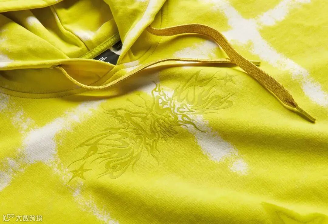 Collina Strada 将怪诞多彩的趣味美学融入至系列之中,蝴蝶、涂鸦和迷幻金属等代表性元素的运用赋予每件单品独特的风格,彰显个性与活力。