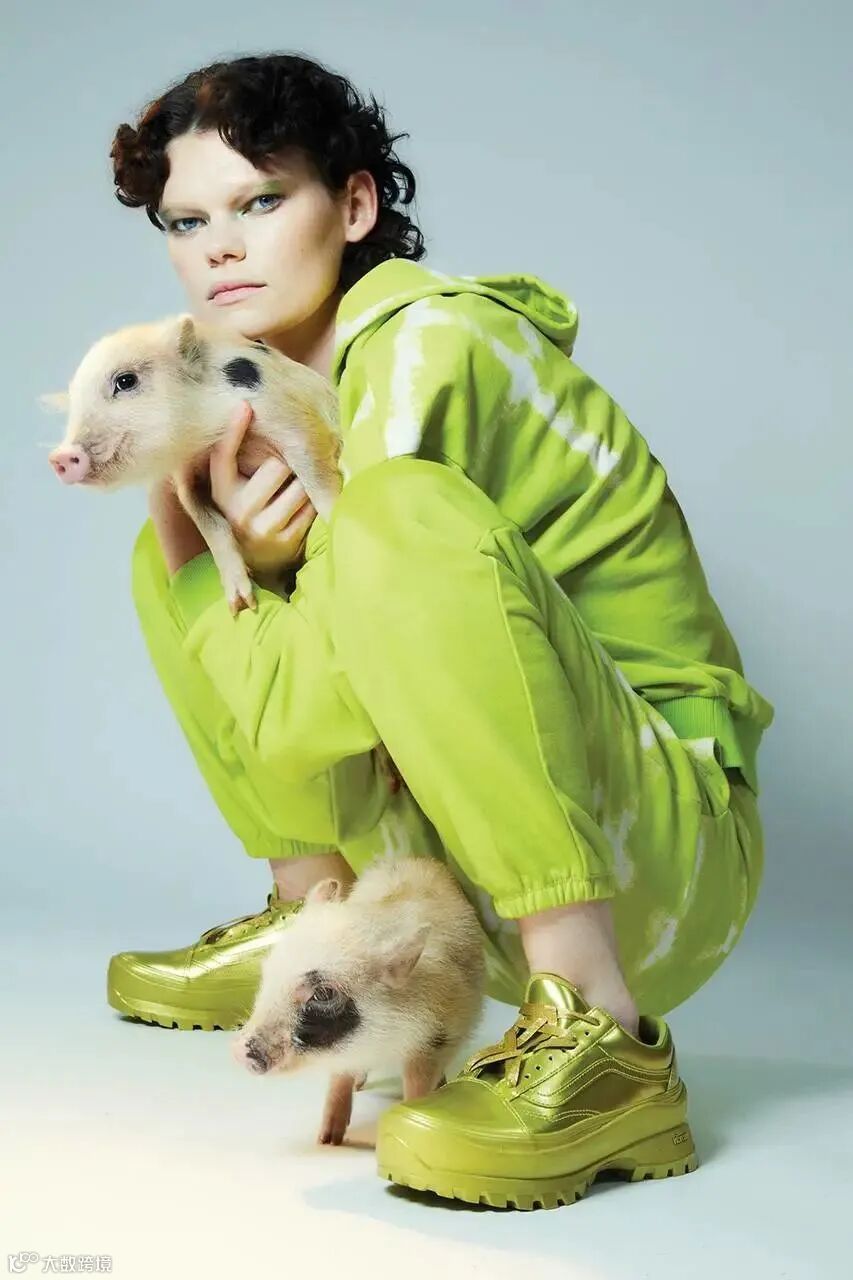 Vans x Collina Strada 联名鞋服系列型录由 Collina Strada 创意总监 Hillary Taymour 和其搭档 Charlie Engman 构思创作,模特选用一群小猪担当,以此象征 Collina Strada 在“Collina-mals”主题中人与动物的联系,Collina Strada 的创意社区也于型录中得以体现。
