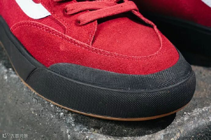 鞋身保留了 Vans 标志性的侧边条纹 Sidestripe,并在鞋头后跟加入半月形橡胶,能适应各种地形。