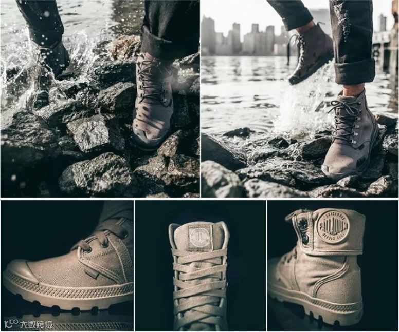 Palladium的好口碑不仅在于传承了军用飞机轮胎鞋底的技术基础,还不断与时俱进,包括在鞋面采用高科技防水涂层,防水性能极佳,极富质感。