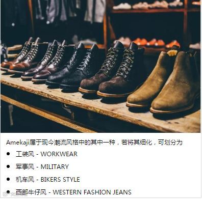 Amekaji,中文音译为“阿美咔叽”,关于其定义及分类时至今日依旧众说纷纭,没有定论。中国的Amekaji风格从日式 Amekaji沿袭而来,而日式 Amekaji风格则得益于二战后美军驻日时期所发生的文化渗透。如今,Amekaji已从小众穿着风格,渐渐转变为一种潮流追逐的生活态度。