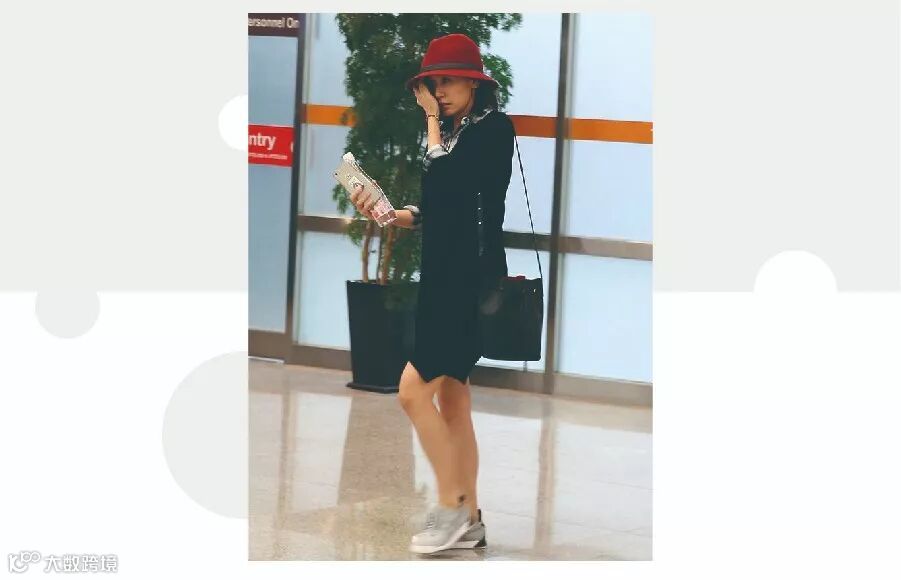 简单随性的连衣裙搭配球鞋被贾静雯穿出不一样的感觉,显眼的红色帽子让人眼前一亮~