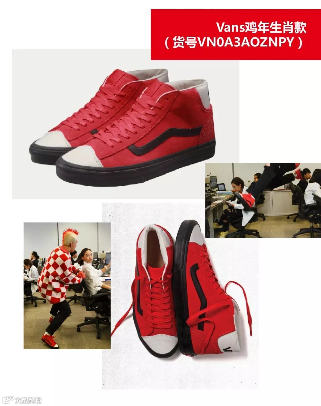 Vans推出的鸡年生肖鞋款,设计灵感源自公鸡的鸡冠,极具节日气氛