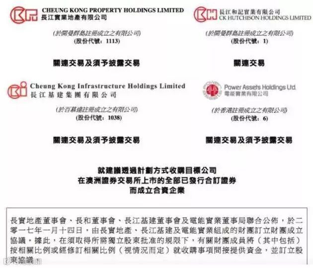 今年1月16日,李嘉诚旗下的长和实业集团、长江实业、长江基建和电能实业联合公告称,将组成财团收购澳大利亚能源集团,耗资将高达431.47亿港元。