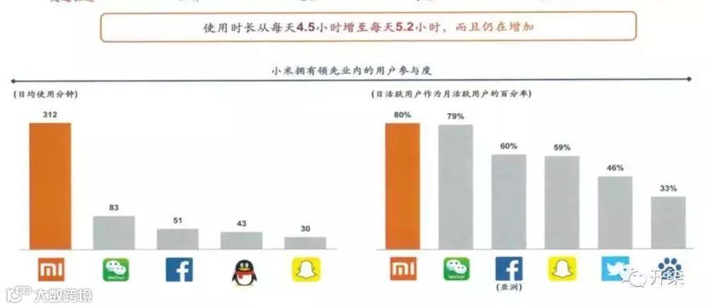 1. 关于日活:上述材料称,小米的日活跃用户达 1.32 亿,月活跃用户 1.65 亿,日均用户使用时间为5.2 小时。报告称,这一指标已经超过了微信。然而手机跟 App 没有可比性,强行对比并不可取。