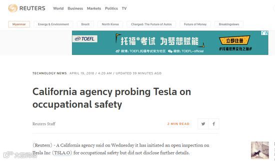 加利福尼亚州职业安全与健康管理机构周三表示,已对特斯拉进行了一次公开调查,以确保特斯拉公司职员的安全得到保障,但没有透露更多细节。