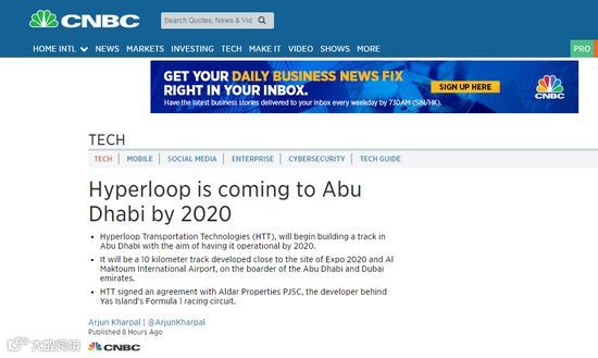 Hyperloop运输技术公司(HTT)将在阿联酋首都阿布扎比建设一条轨道,并计划在2020年实现试运营。Hyperloop已经于当地开发商Aldar Properties PJSC签署了一项协议,开始建造超级高铁系统。