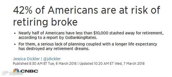 根据个人理财网站据GoBankingRates的一份报告,将近一半的美国人的退休金还不到1万美元。对他们来说,严重缺乏规划,加上预期寿命更长,摧毁了任何退休梦想。