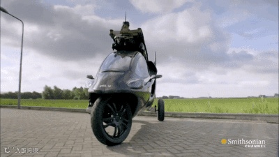 这款样貌像三轮车的是一款飞行汽车,在顶部隐藏着一个螺旋桨