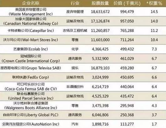 比尔与梅琳达·盖茨信托基金部分投资组合(2015年12月31日)