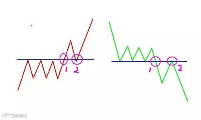 这里说的就是,上涨中,我们要找到横盘的时候,当横盘的高点突破时,我们要坚决入场,此时往往伴随着放量,会令你迅速远离建仓区,迅速获利。另外一种就是当价格突破以后,会寻找支撑,以获得更大的动能,我们可以在第二个入场点位入场,当你在第一个点位入场,价格涨幅很小,同时又下跌回测支撑的时候,你可以继续拿单子,不要着急,因为后面的行情肯定是不会小的,不然行情不会去寻找支撑。如果错误了,你可以大胆的平仓,因为事实证明,这是一次错误的突破,大可不必过于懊恼,你的这次懊恼,意味着下一个真正的行情到来时,你不会吃到什么大利润。所以,绝对不要懊恼!