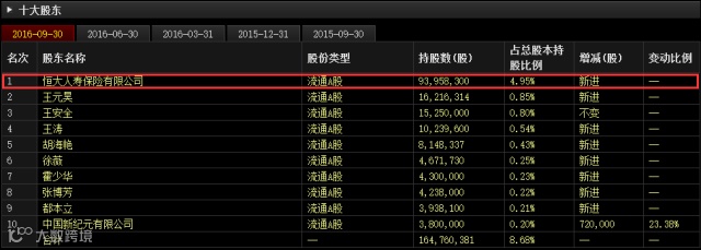 上市公司看到9月底恒大买进来后,