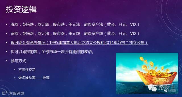 借鉴戴蒙德曼公司首席策略师管大宇同学的PPT,以这次英国公投为例,来看看在黑天鹅事件中,怎样实现N倍的收益。