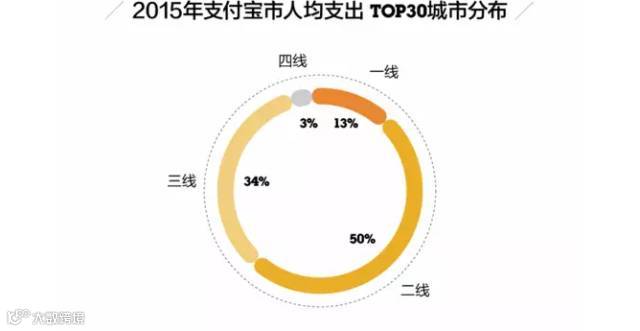 蚂蚁金服数据显示,2015年支付宝人均支出Top 30城市中,三、四线城市也占了近四成。当然了,其中18个还是来自包邮区