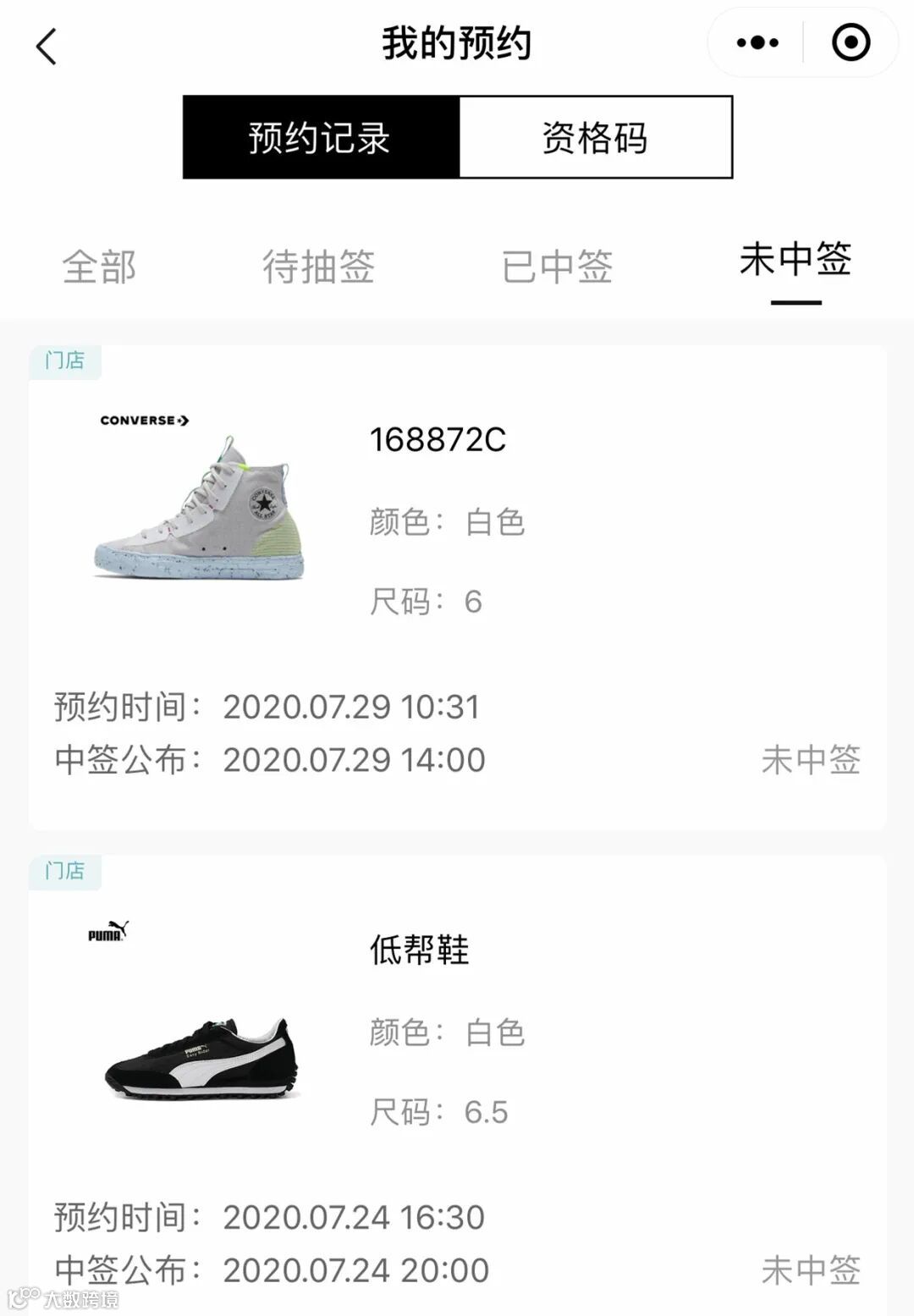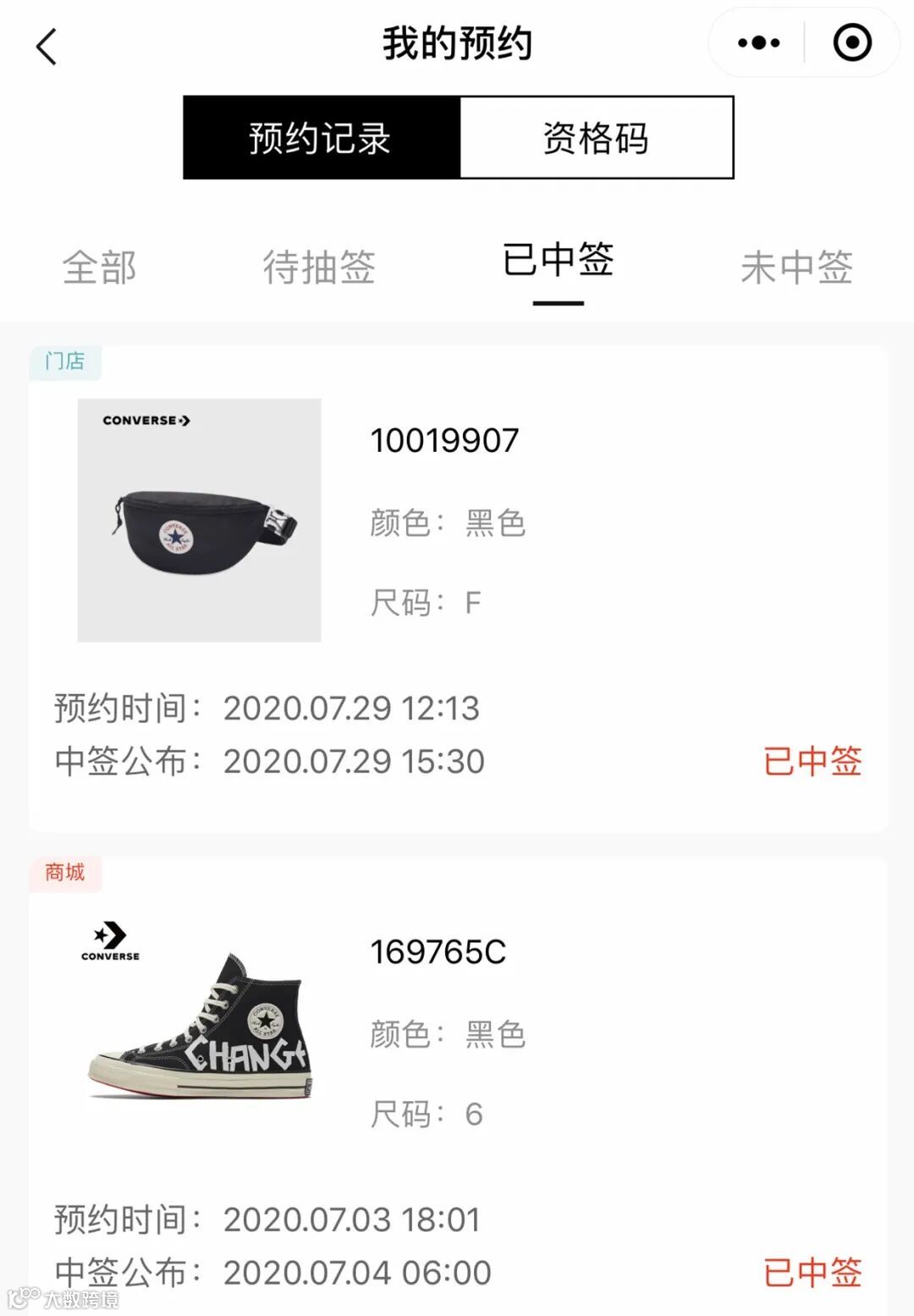 注:中签资格码仅限发售当天有效