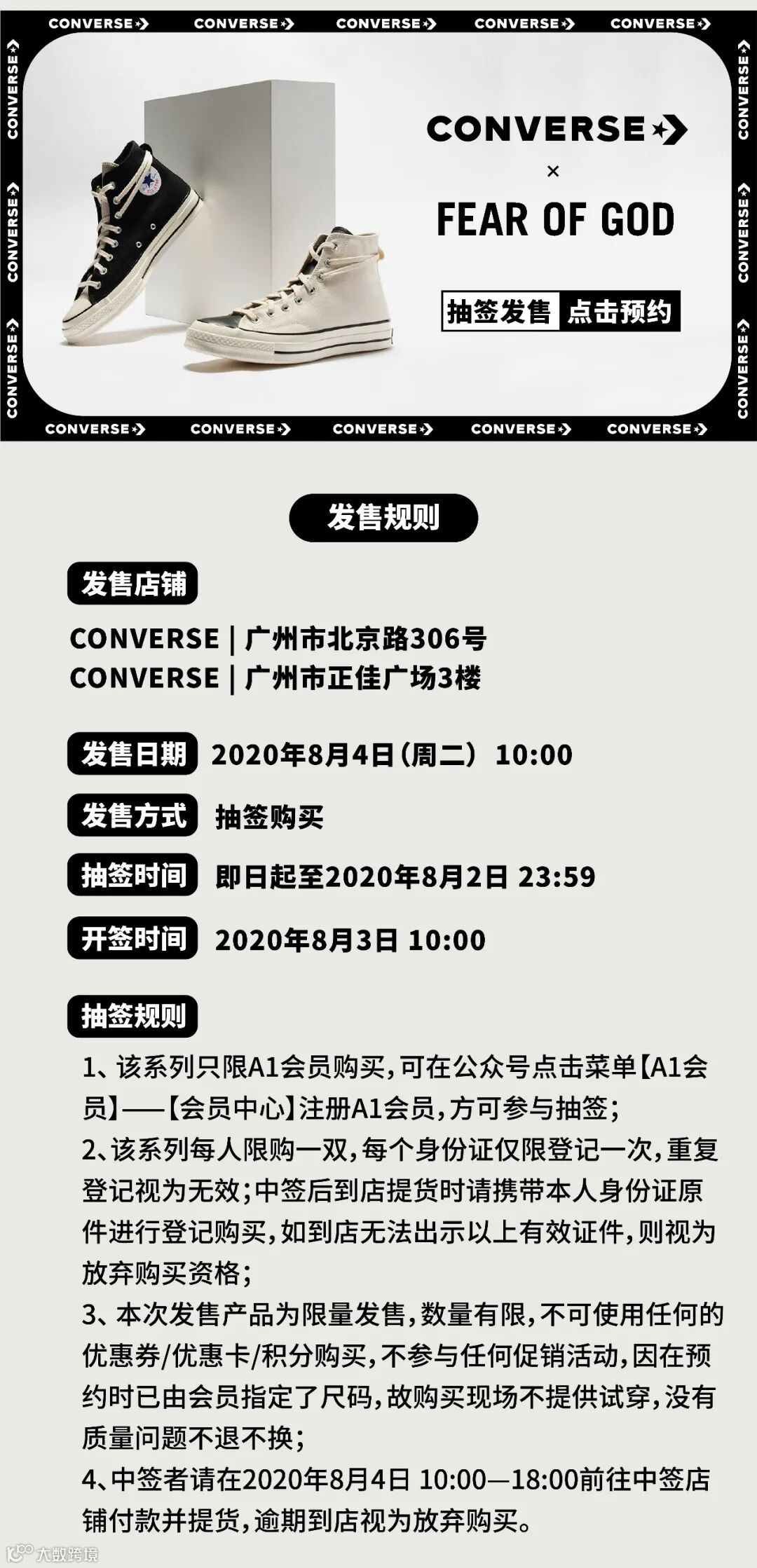 在关注A1潮品荟微信服务号的情况下,届时请留意开签公示时间,公示时间已到,您可在菜单栏中【A1会员】——【我的预约】点击参与的抽签,查看抽签结果(已中签/未中签)