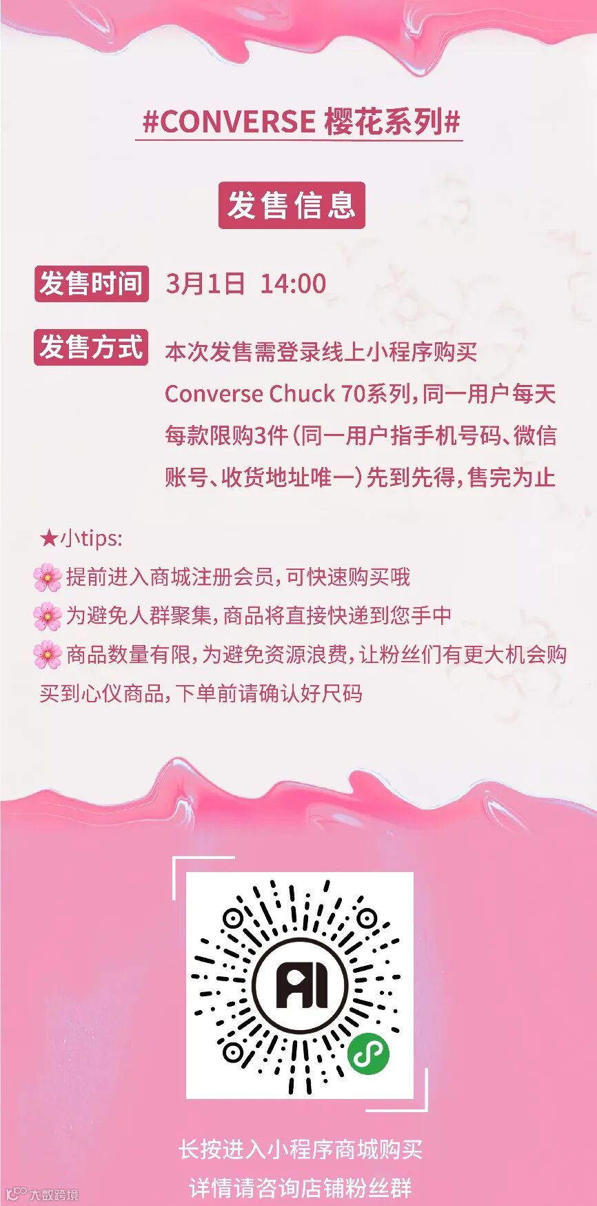 导读:全新CONVERSE樱花系列,让春日樱花为她绽放。