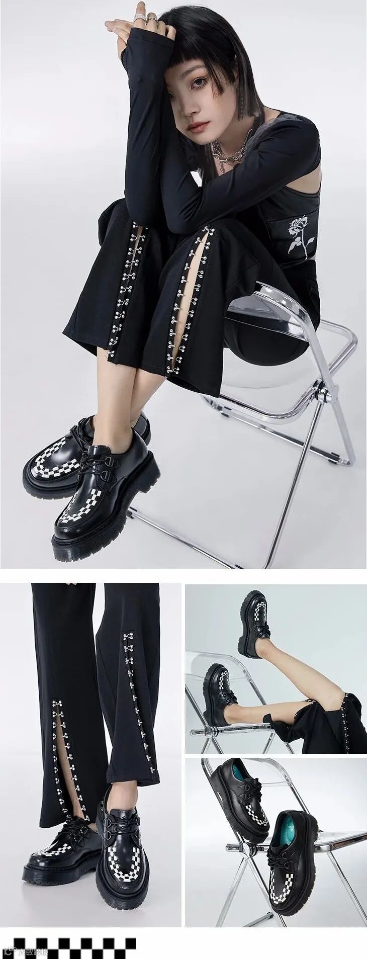 黑白拼接的乐福鞋搭配白色筒袜