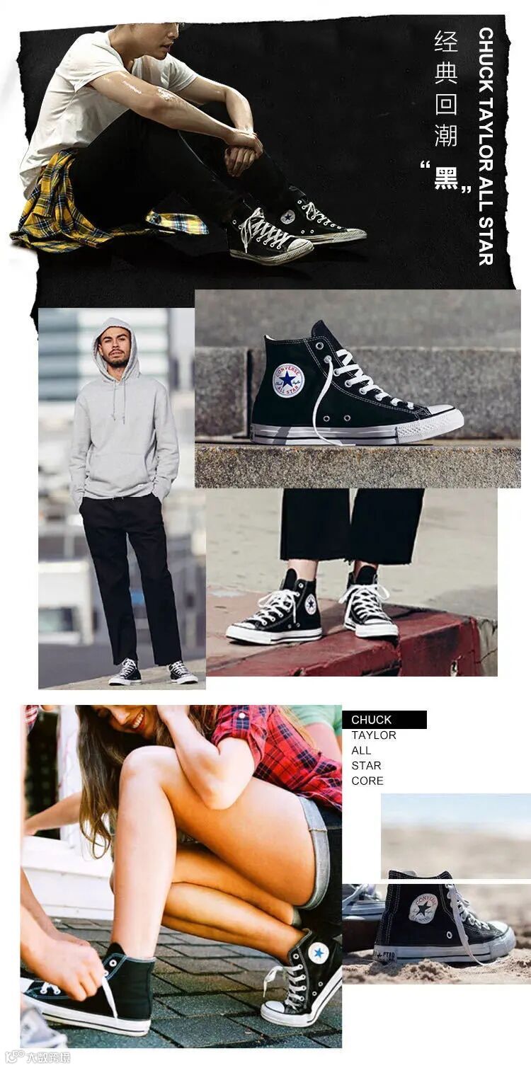 Converse诞生于1908年。创办以来Converse坚持品牌的独立性设计,不追随。最初只生产“橡胶鞋”,但很快就开始做网球和篮球鞋。集复古、流行、环保于一身的ALL STAR帆布鞋,是美国文化的精神象征,以其随心所欲,自由自在没有约束的穿着形态,更成为追求自我时尚的青年人的忠实拍挡。在中国市场,现在上市的最引以为傲得三大经典有Chuck Taylor All Star(全明星经典帆布鞋)、Jack Purcell(开口笑)、Cons(滑板运动鞋)三大系列 。