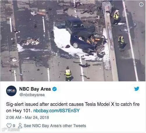 @新浪综合【特斯拉又出致死车祸:Model X与两车相撞后起火】在马斯克删除SpaceX Facebook账号的同时,他家后院也“起火”——美国当地时间周五上午,一辆蓝色特斯拉Model X在美国101高速路上向南行驶时,撞上中间隔离栅,汽车起火。随后,这辆特斯拉被同一条车道上从后方开过来的马自达相撞,然后再被一辆奥迪撞上,一共3辆车被卷入这起事故,加利福尼亚公路巡警随即关闭了101号高速公路南行的四条车道。