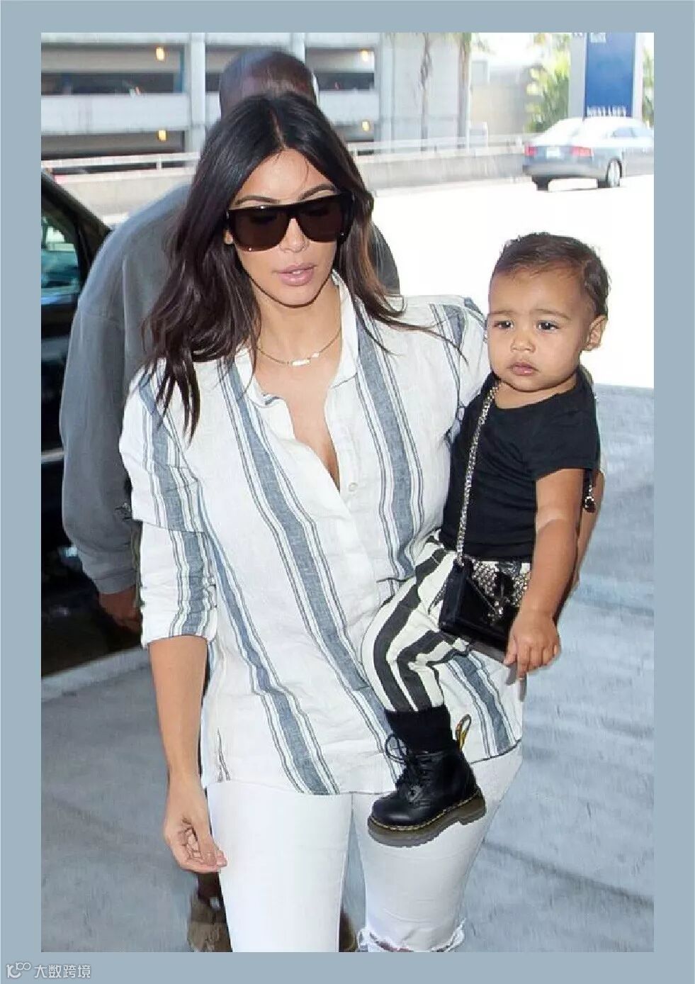 卡戴珊的条纹衬衣&白色破洞小脚裤,西北妹的黑色紧身T&条纹长裤,这品味简直了!
