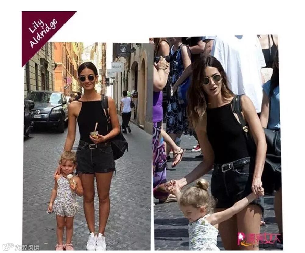 维密模特Lily Aldridge 的这组亲子装也很值得参考~麻麻和宝贝乍一看穿得完全不一样,但其实相当默契。插肩设计的吊带背心&小热裤,麻麻穿出女人味儿,宝贝穿出萝莉范儿。