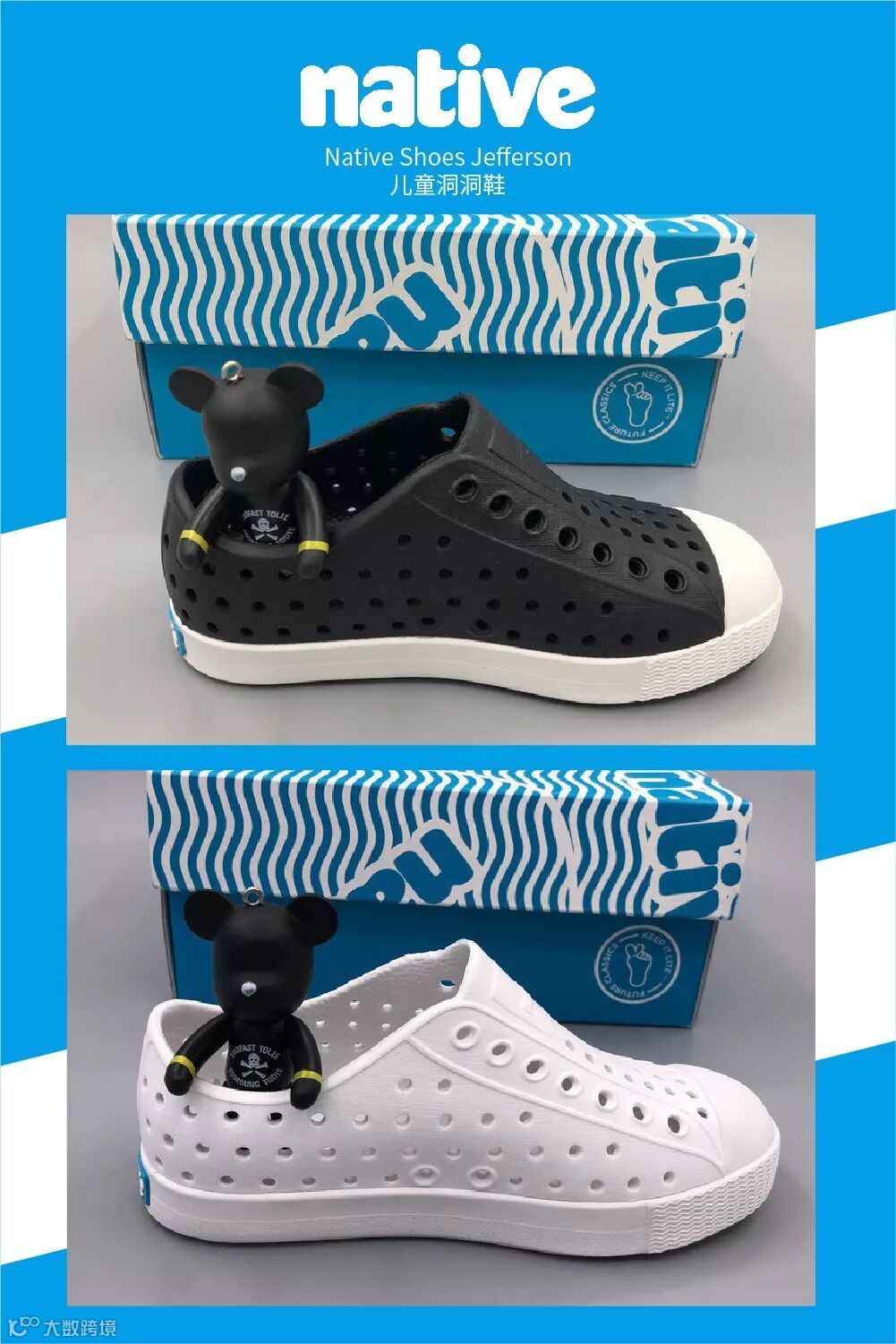 宝贝可以选择穿搭Native洞洞鞋,颜色上可以跟麻麻黑白同步或黑白交替~