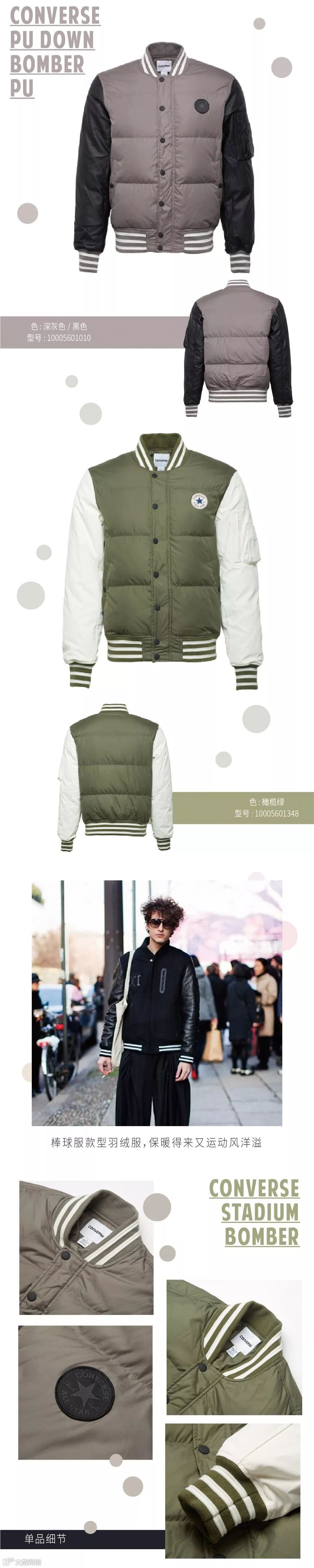☆ 借鉴了棒球服样式的羽绒夹克,营造浓郁冬日气息