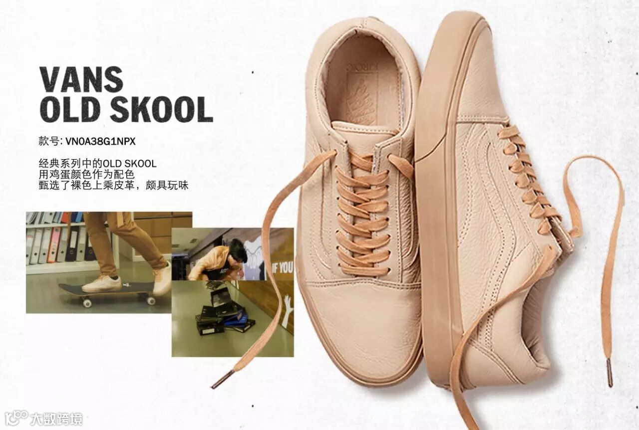 经典系列中的OLD SKOOL,用鸡蛋颜色作为配色,甄选了裸色上乘皮革,颇具玩味。