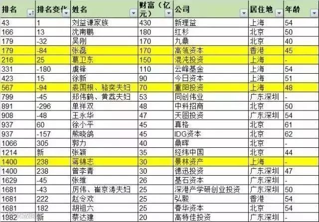 根据胡润的排名,张磊以150亿元的财富名列中国顶尖风险及股权投资人排行榜。复星的郭广昌,以280亿元成为“点金圣手”首富,盛大的陈天桥,以170亿元位列第二;高瓴资本的张磊,以150亿元位列第三。
