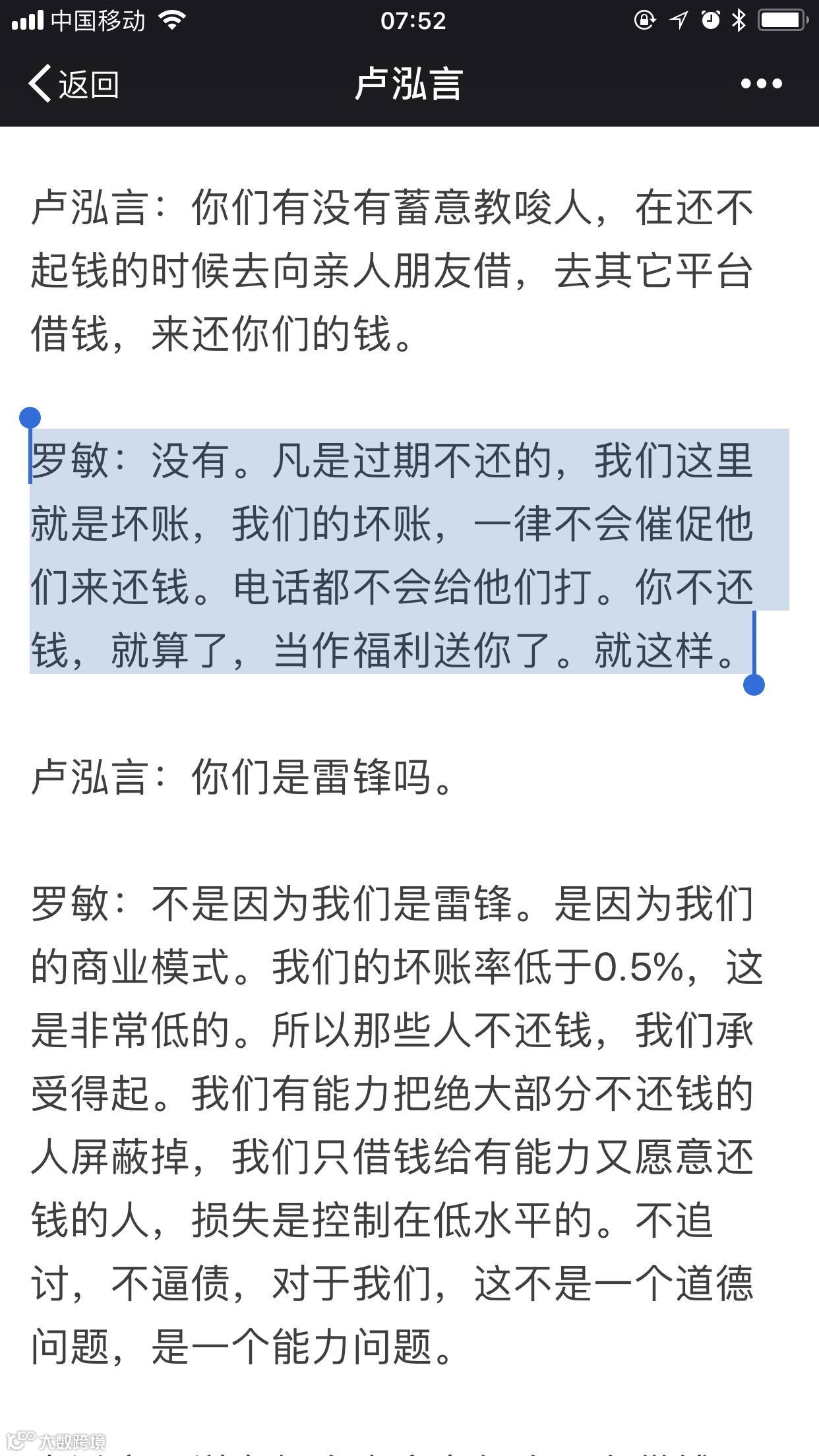 罗敏:没有。凡是过期不还的,我们这里就是坏账,我们的坏账,一律不会催促他们来还钱。电话都不会给他们打。你不还钱,就算了,当作福利送你了。就这样。