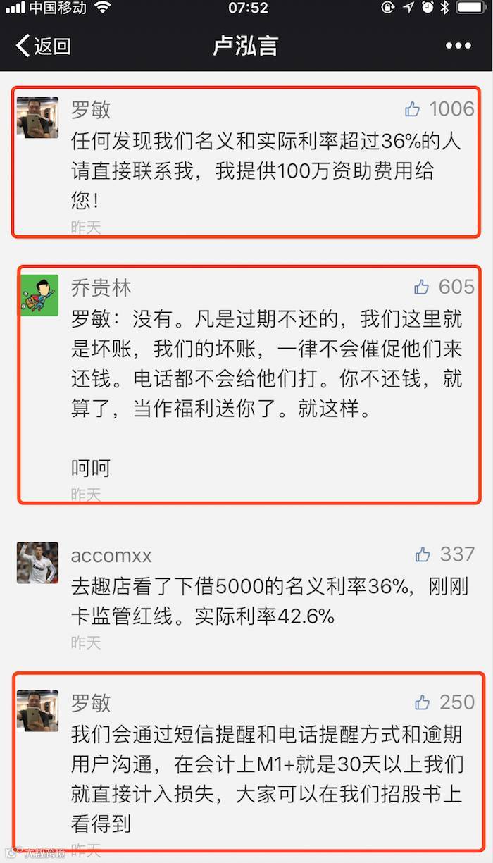 还有很多人表示,要跟趣店借点钱花,反正“你不还钱,就算了,当作福利送你了”。也有人说:“最怕空气突然安静,最怕老板突然回应。”