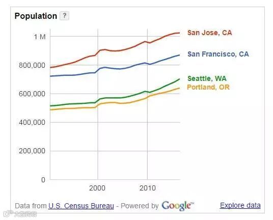 在过去十年中,随着经济的复苏,亚马逊等科技巨头的城市扩张,也让西雅图的房价中位数直线上升:从486000美元上涨了54%,达到了748500美元。人口则增长了约19%,达到了704000人。