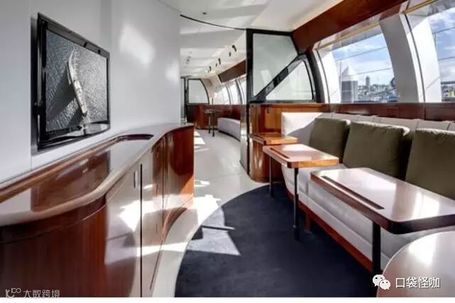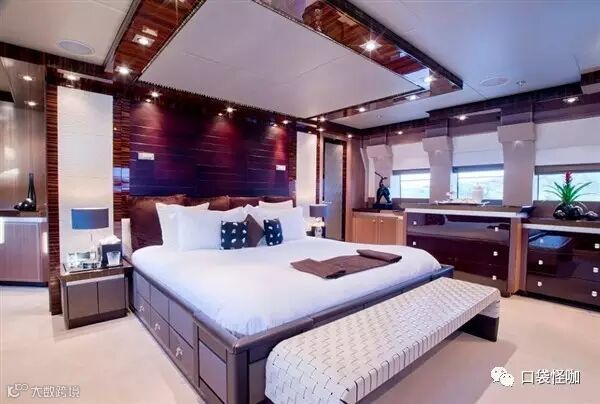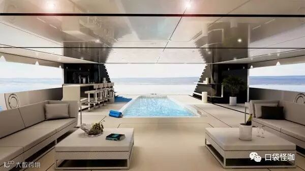 甚至在甲板上设计了一个小花园,而主卧舱的天花板可自动伸缩打开,让阿布抱着女友在星空下入眠。