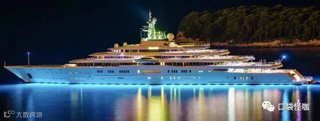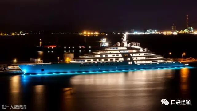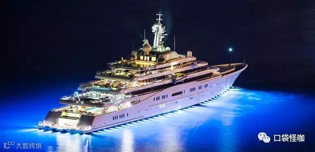 夜晚这艘游艇比阿扎姆号更加灯火通明