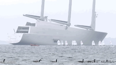 Sailing Yacht A 长约 143 米,高约 91 米,以游艇的角度来说绝对是当之无愧的巨物了。