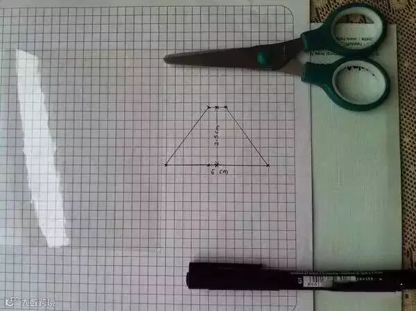 然后,在方格坐标纸上画出一个等腰梯形,为的是稍后在CD盒上裁剪进行图案比对。