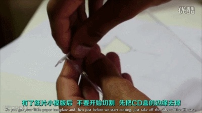 接下来要用上CD盒。我们首先需要把CD盒的边缘给去掉,留下中间平整的部分即可。