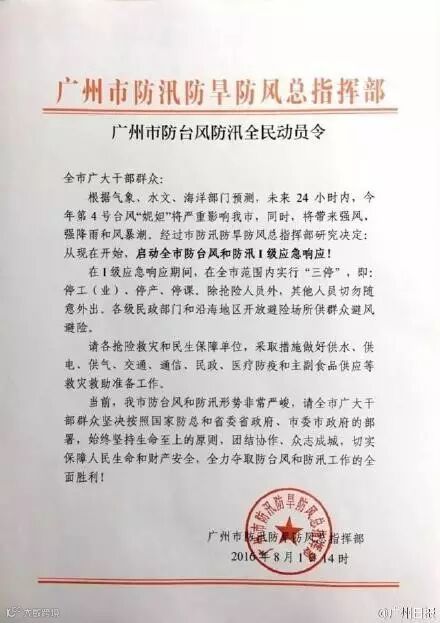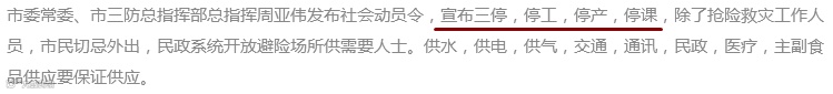 市委常委、市三防总指挥部总指挥周亚伟发布社会动员令,宣布三停,停工,停产,停课,除了……