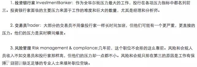 把华尔街的工种按照压力做了个划分排名:
