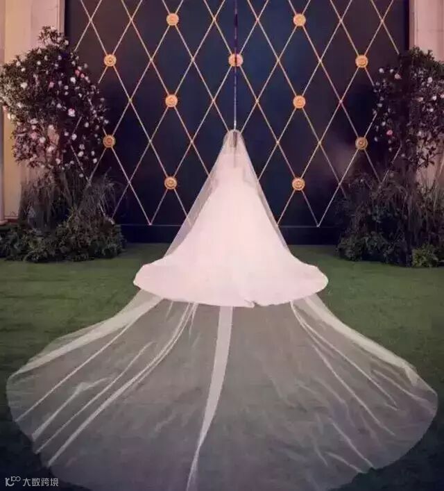 裙摆拖尾可能有点谦虚,所以头纱得镇住全场,头纱长达4.5米。