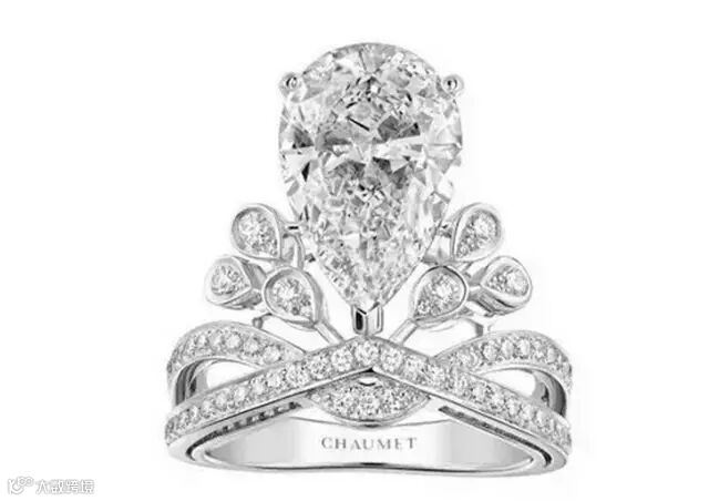 她的订婚钻戒也来自Chaumet ,是Joséphine系列里最华丽的一枚,灵感来自皇帝拿破仑的第一任妻子约瑟芬的皇冠。主钻是一颗梨形鸽子蛋,另外有 73颗明亮式切割钻石