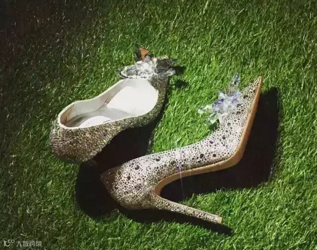 婚鞋更加公主了,是今年Jimmy Choo的灰姑娘水晶鞋。