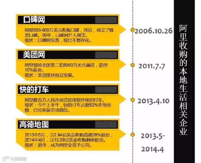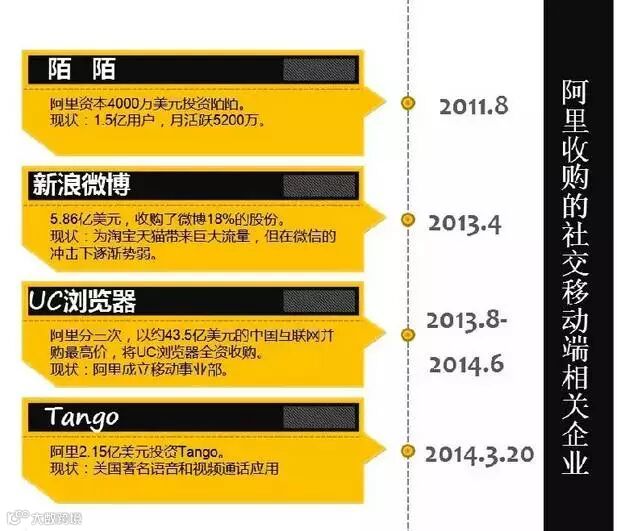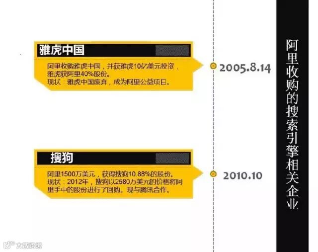 接下来小盈女为大家盘点一下阿里历史上做出的重磅收购以及投资: