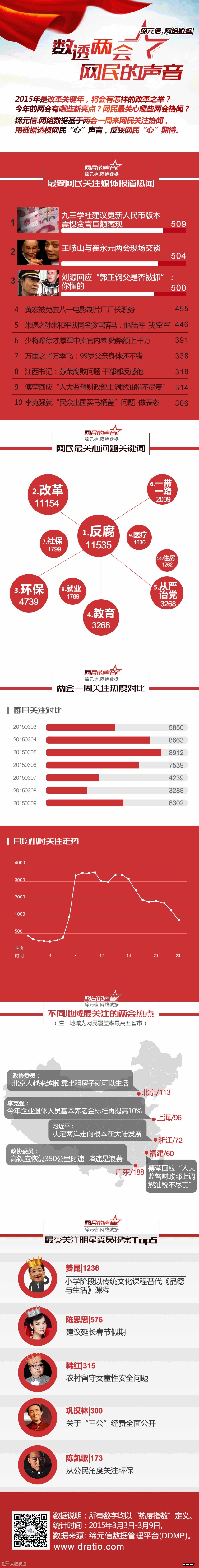2015年是改革关键年,将会有怎样的改革之举?今年的两会又有哪些新亮点?网民最关心哪些两会热闻?缔元信.网络数据基于网民行为数据,梳理两会召开一周来网民关注的热点新闻;用数据透视网民"心"声音,反映网民"心"期待。